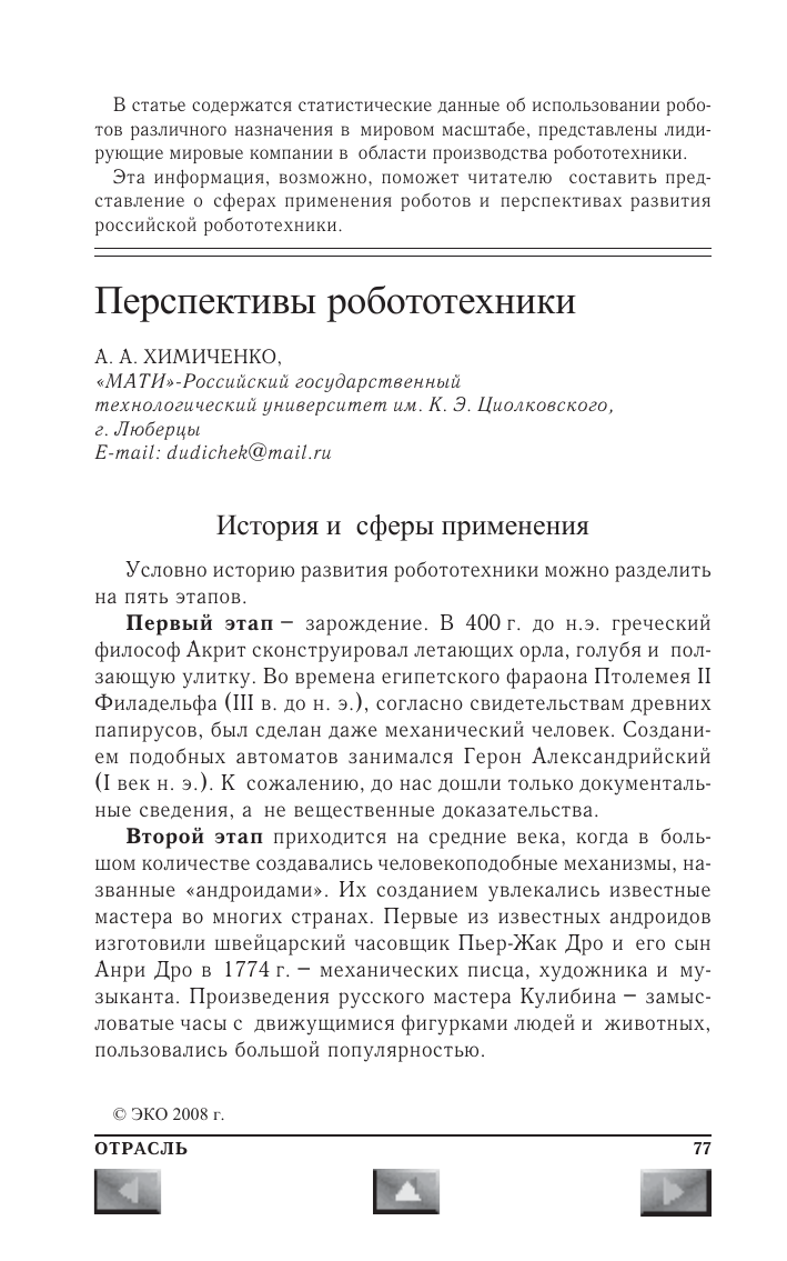 Перспективы развития роботизированных систем